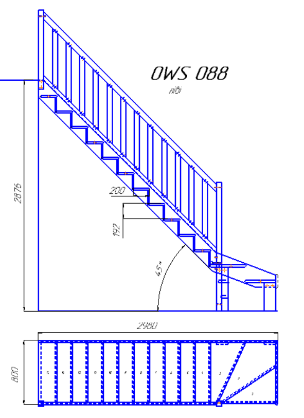 Сходи - конструктор для самостійного складання (без фарбування) - висота між поверхами - 2876 мм.